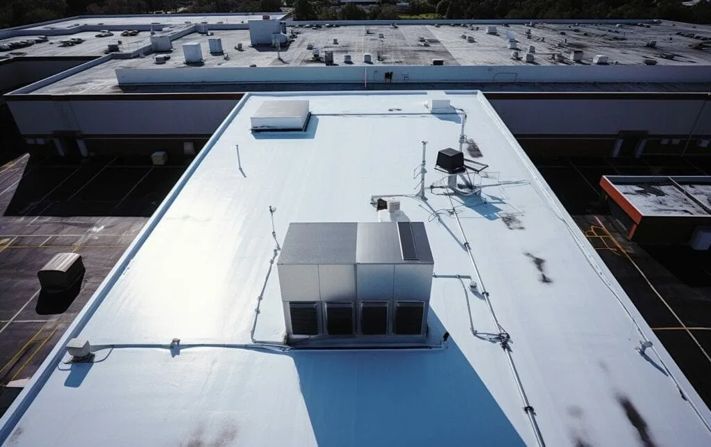 - Overall condition of the roof membrane: Look for signs of wear, cracking, blistering, or ponding water.